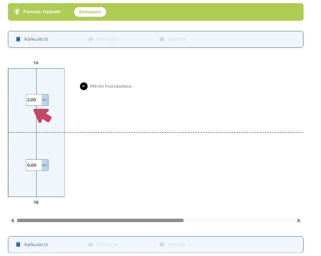 A papírra felírt 2B borda hosszt írd be a tervezőbe.