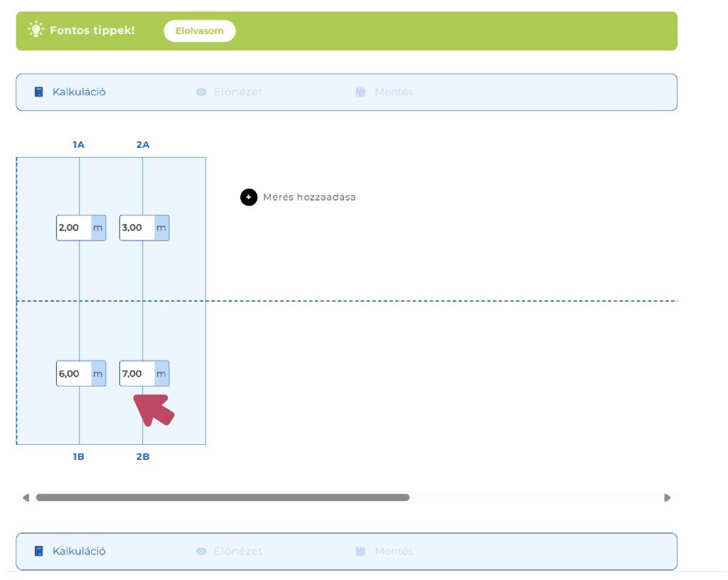 Fontos tudnivaló, hogy a számpárok, amiket beírsz nem az egyes csíkok hosszát határozzák meg, hiszen azt a kalkulátor/tervező adja majd meg az alsó és felső értékek alapján! Valójában felméréskor a számpárok a hegesztési találkozások mentén mért értékeket határozzák meg.