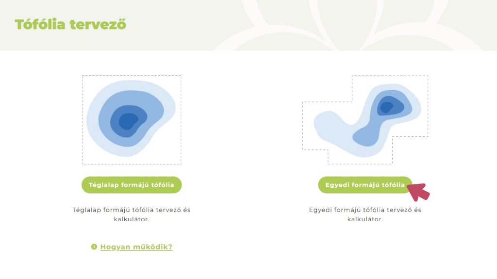 1. Lépés: Lépj be a tófólia menübe és válaszd az egyedi formájú tófólia tervezőt #
