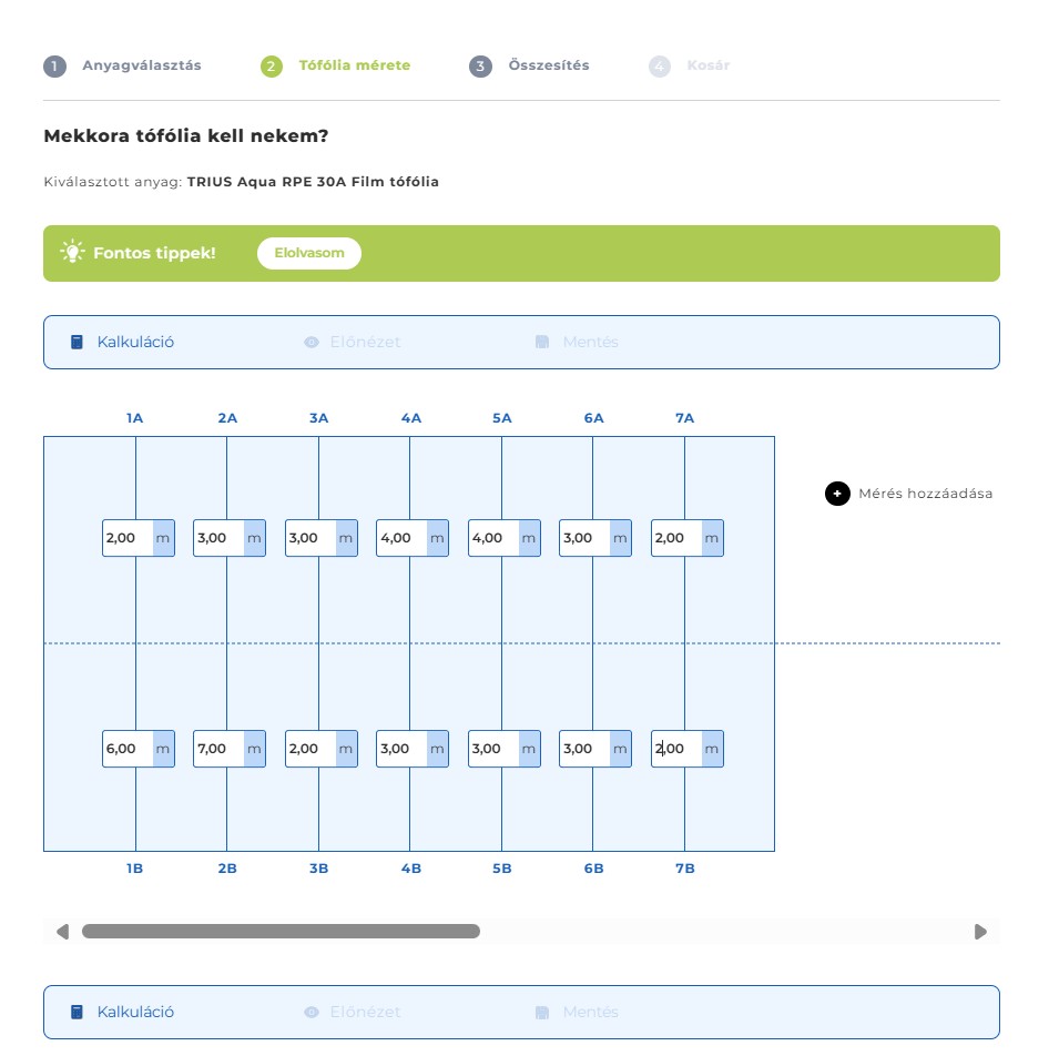 A kalkuláció gombra kattintva látni fogjuk, hogy mennyibe fog kerülni a megtervezett tófólia.
