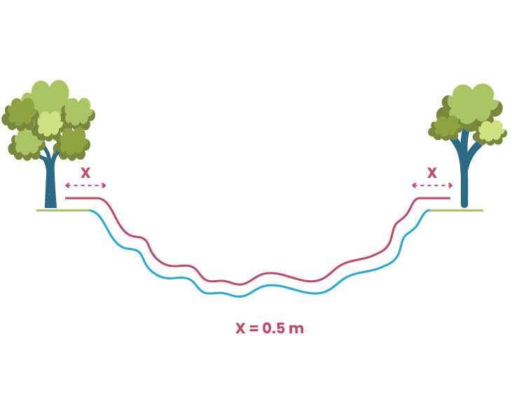 A mérőszalag eleje és vége is lógjon ki a tómederből, ne csak a tó szélétől a másik széléig tartson! A kilógás mértéke meg fog egyezni a majdani rögzítési többlettel. Tehát annyira lógasd ki a szalag mindkét végét egyformán, amennyi rögzítési többlettel számolsz! Számolj legalább 50 cm többlettel, de a rögzítési módtól, talajtípustól függően ez lehet több is.