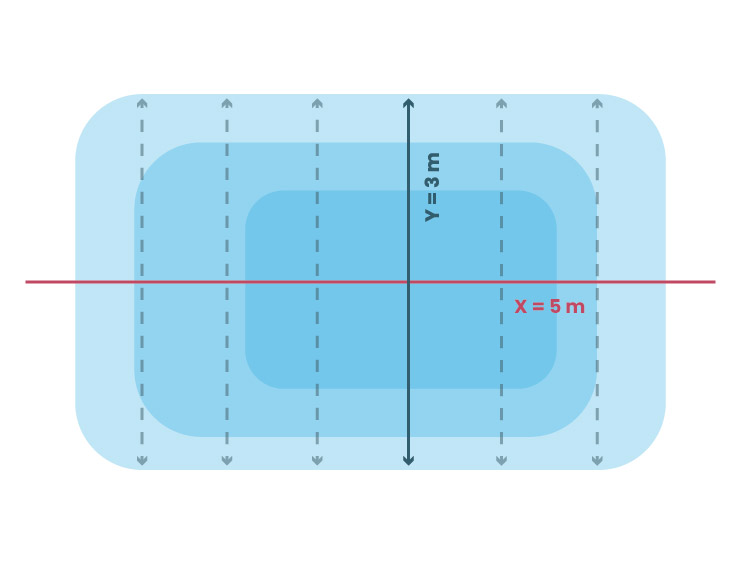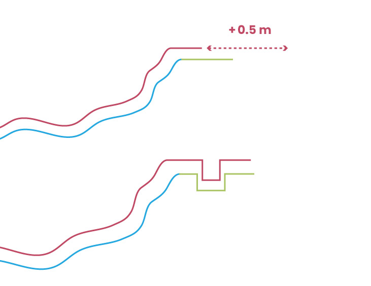 A csíkok szélessége mindig 5.3 m (ekkora lépésekben növelhető a geotextília mérete). Tehát a lepel egyik mérete attól függ, hogy hány csíkot hegesztünk össze. Például, ha 7 darab csíkra van szükség, a kész lepel szélessége 7 × 5.3 m = 37.1 m lesz.