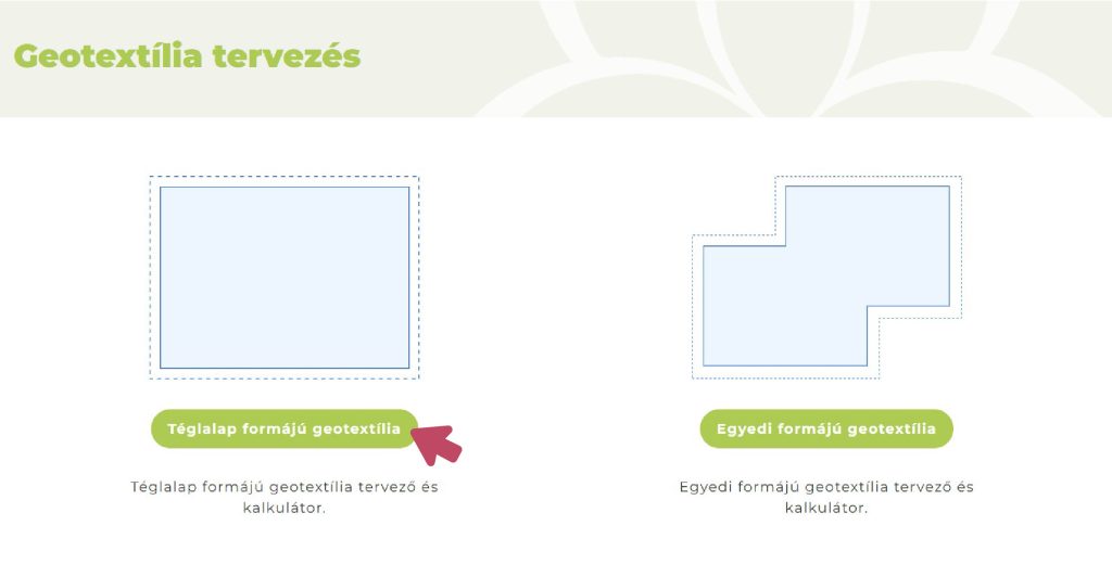1. Lépés: Lépj be a geotextília menübe és válaszd a téglalap formájú geotextília tervezőt #