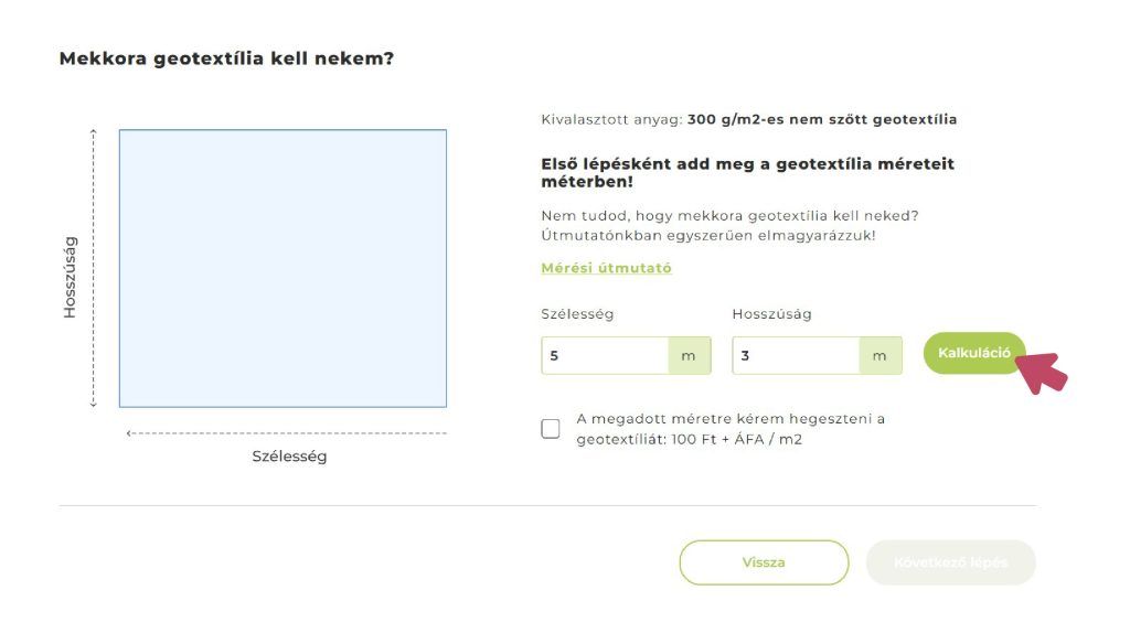 Azt is látni fogod, hogy mennyibe fog kerülni a geotextília.