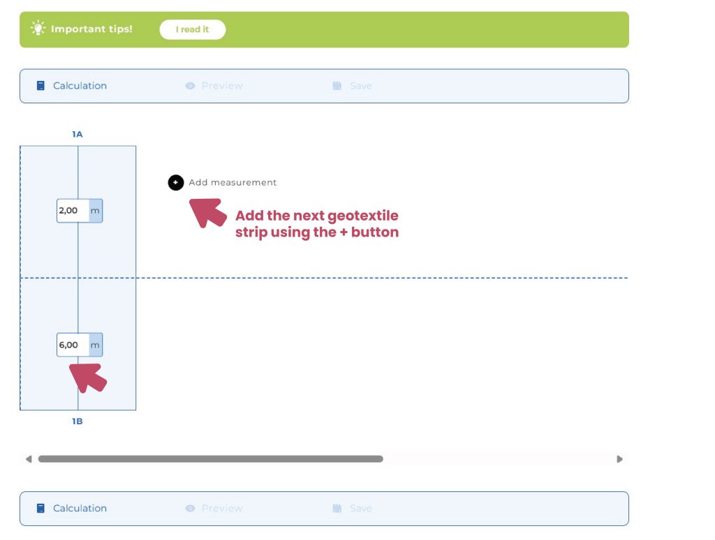 It may also happen here that you’ll see one more geotextile strip in the preview than the number you entered — but that’s okay! #