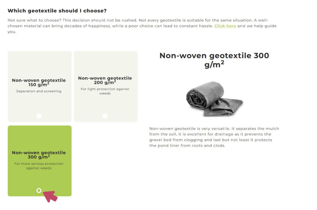 You will also see how much the geotextile will cost.