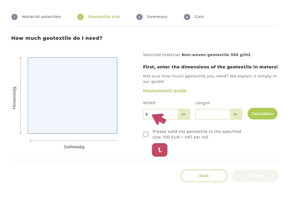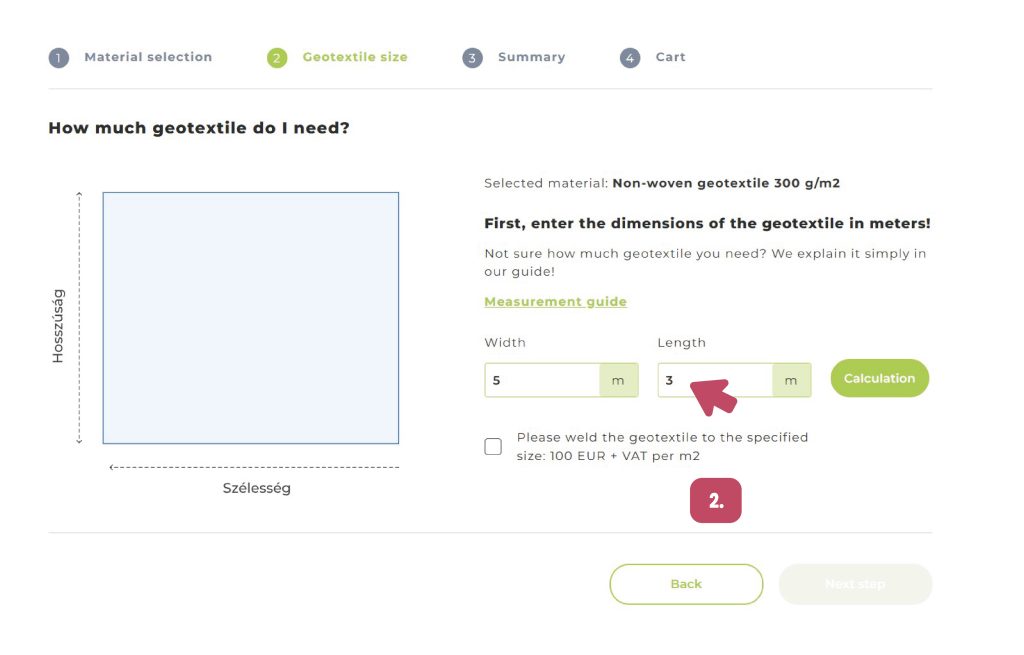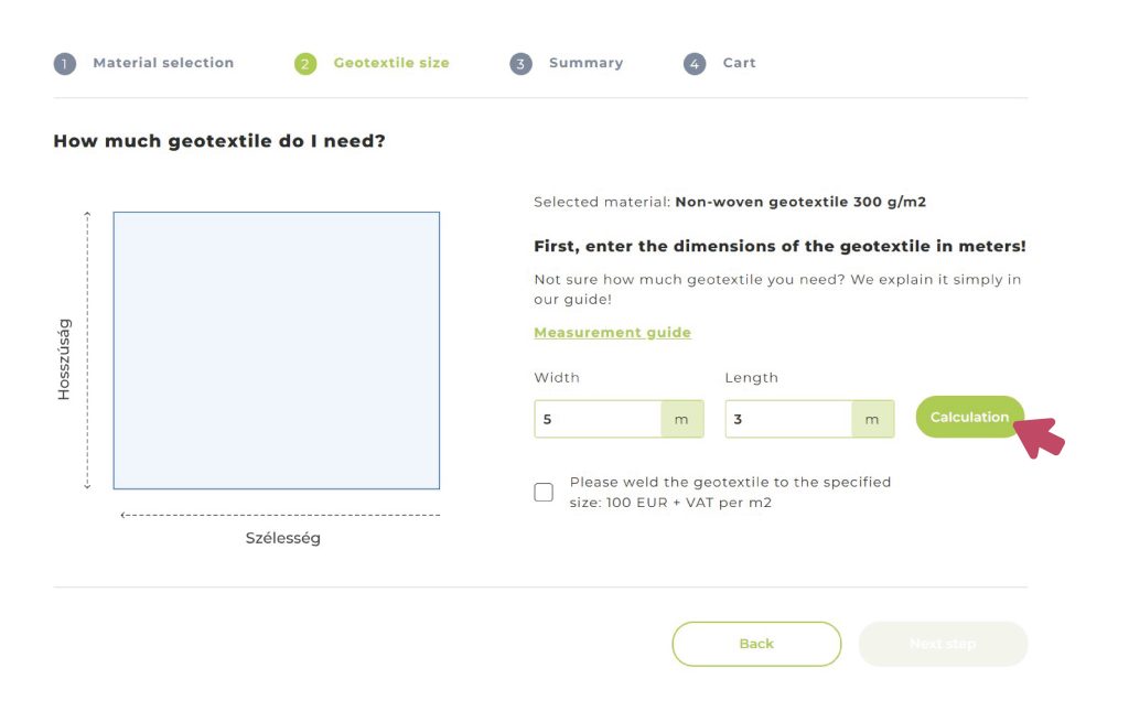 By clicking the calculation button, you will receive the size of the geotextile we can manufacture based on your parameters.