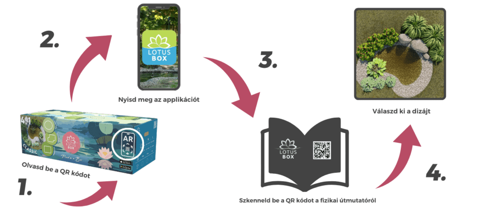 All you have to do is choose the right Lotus Box size for you. Follow the instructions above; download our app to visually design your pond and place it in your garden. You can see in advance how your beautiful garden pond will look.