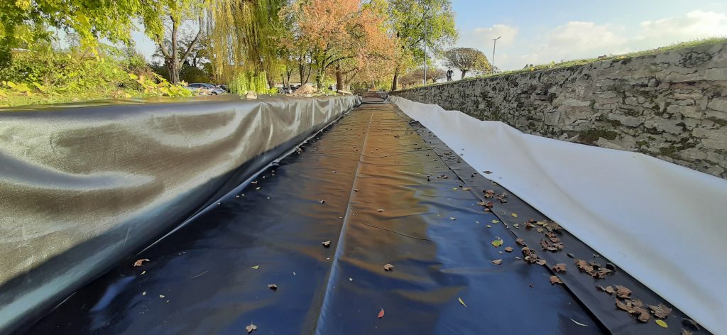 If you know how to weld pond liner and you have the right tools, it’s easy: design the pond insulation in several pieces and then you only have to weld the big pieces together on site.